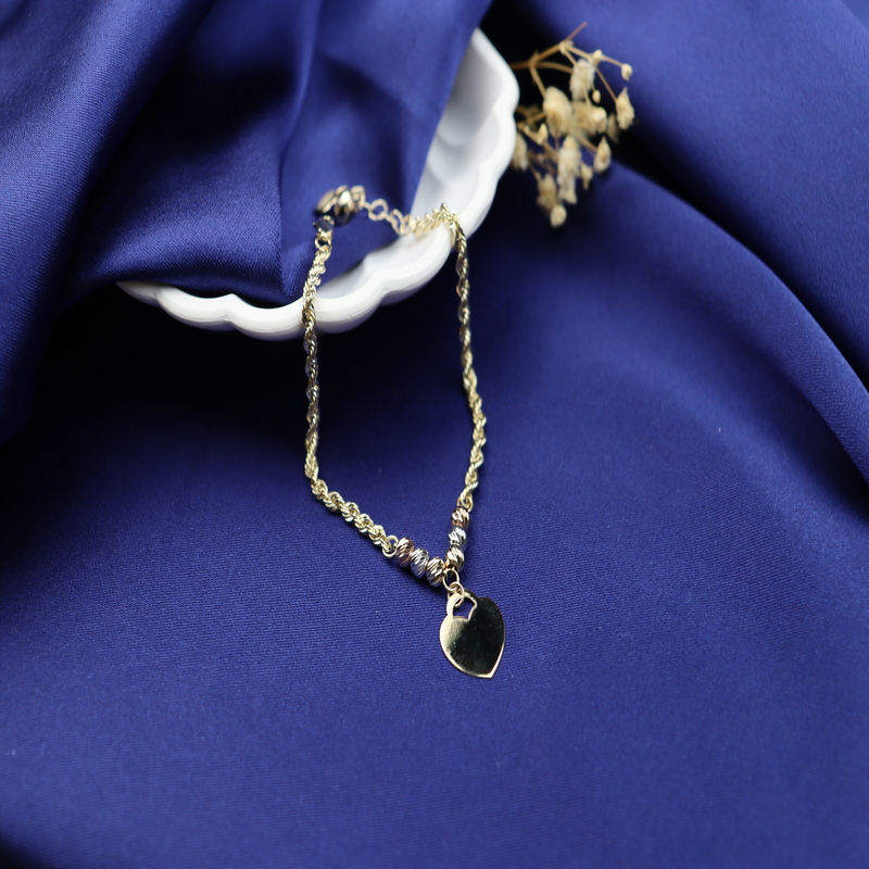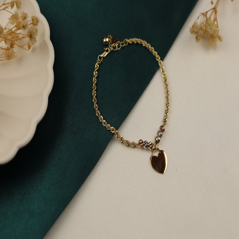 Zarafetin ve şıklığın birleştiği 14 Ayar Altın Üç Renkli Kalpli Halat Bileklik, ince işçiliği ve göz alıcı tasarımıyla bileğinizde ışıldıyor. 3.27 gram ağırlığındaki bu özel bileklik, 50’lik halat örgü tasarımıyla dayanıklılığı ve estetiği bir araya getiriyor. Üç renkli altın boncuk detayları ve 1.5 cm genişliğindeki kalp figürü, romantik ve modern bir dokunuş sunuyor. 17 cm uzunluğa sahip olup, 2.5 cm uzatma zinciri sayesinde bileğinize mükemmel uyum sağlar. Kare kilit mekanizması ile güvenli bir kullanım sunan bu bileklik, hem günlük kombinlerinizin tamamlayıcısı hem de özel günlerde şıklığınızı artıran eşsiz bir takıdır.