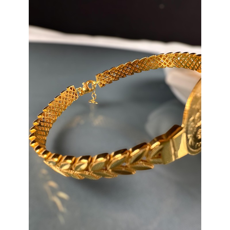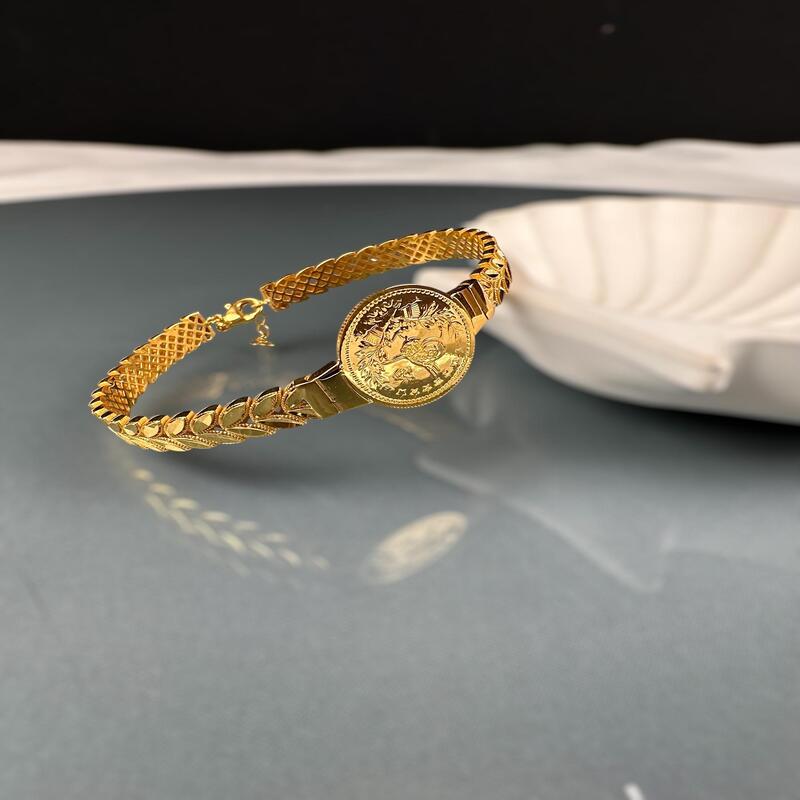 Tarihi zarafet modern bileğinizde! 22 ayar saf altından üretilen bu 14.97 gramlık kelepçe bilezik, Osmanlı tuğralı ihtişamlı madalyon detayıyla stilinize asil bir dokunuş katıyor. Hem klasik hem gösterişli bir duruşa sahip bu özel tasarım, hem günlük kullanım hem de özel günler için mükemmel bir tercihtir.