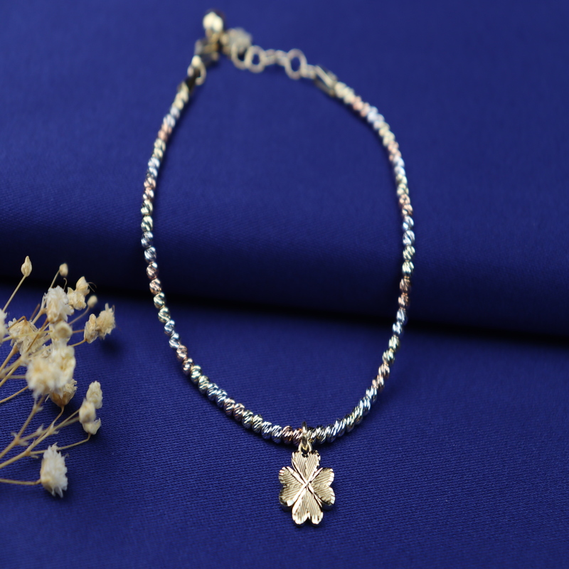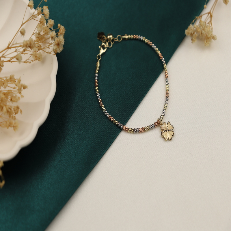 Zarafeti ve şıklığı bir araya getiren 14 Ayar Altın Bileklik, dört yapraklı yonca detayıyla tasarlanarak şansın ve pozitif enerjinin simgesi haline gelmiştir. İnce işçiliği ve estetik tasarımıyla her kombine uyum sağlayan bu bileklik, zincir modeli sayesinde dayanıklı ve göz alıcı bir görünüm sunar.