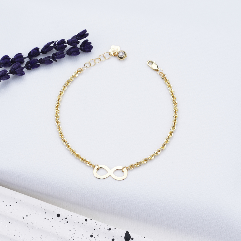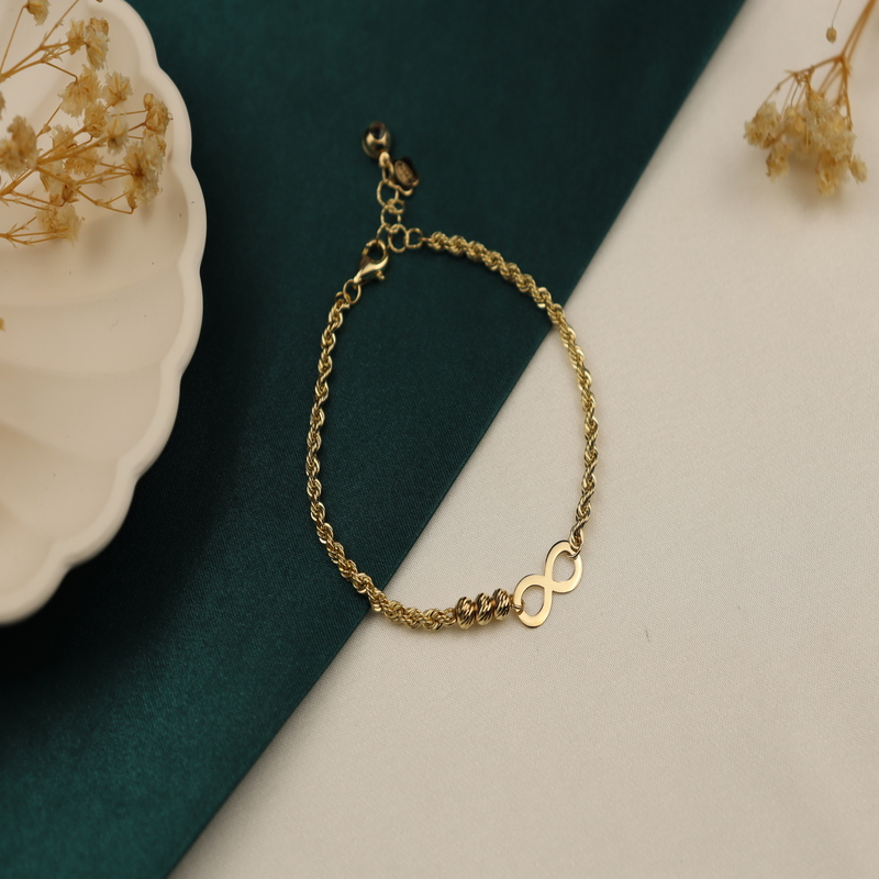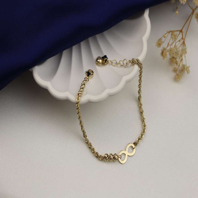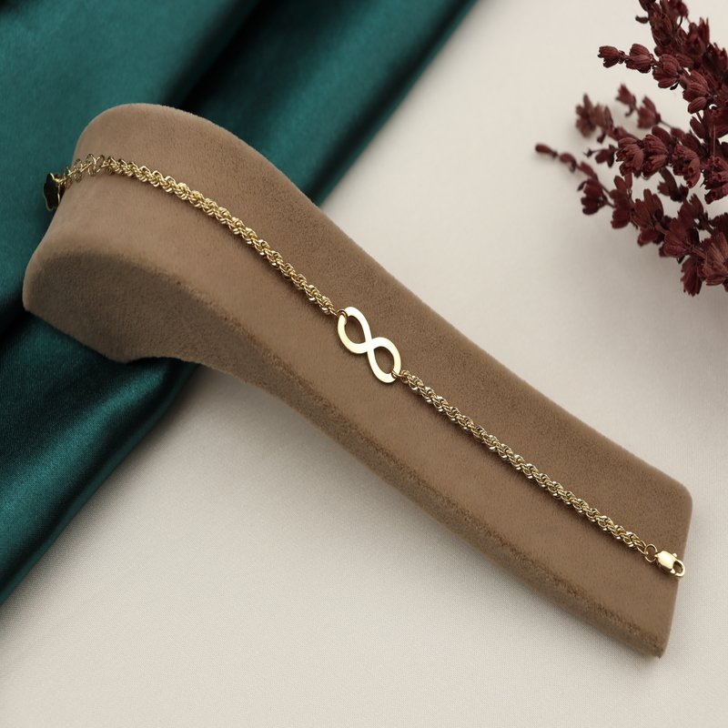 Zarif ve şık tasarımıyla 14 Ayar Altın Sonsuzluk Halat Zincir Bileklik, anlam dolu bir aksesuar arayanlar için mükemmel bir seçim! Sonsuzluk sembolü, sevgi, bağlılık ve sonsuz dostluğu temsil ederken, 2.10 mm kalınlığındaki halat zinciri sağlamlığı ve zarafeti bir arada sunar.