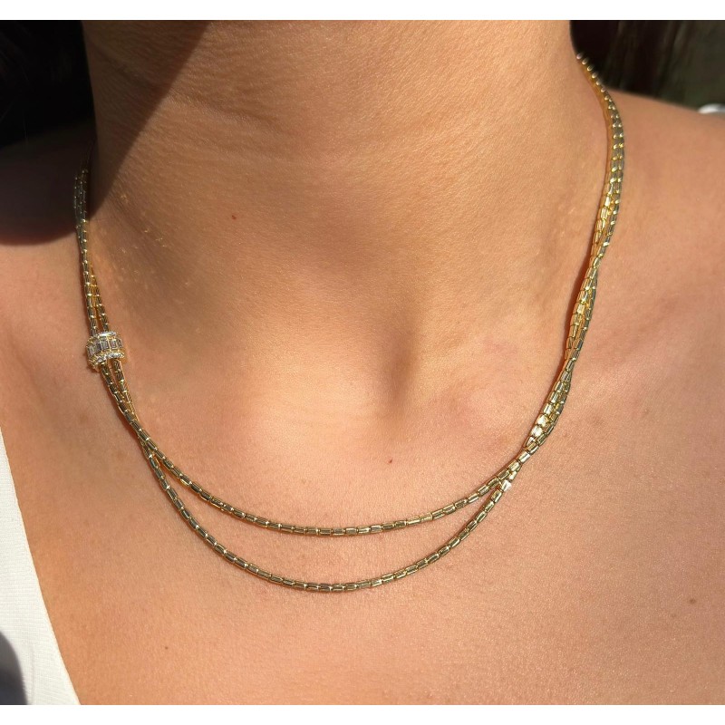 14 Ayar Altın Baget Taşlı Kolye